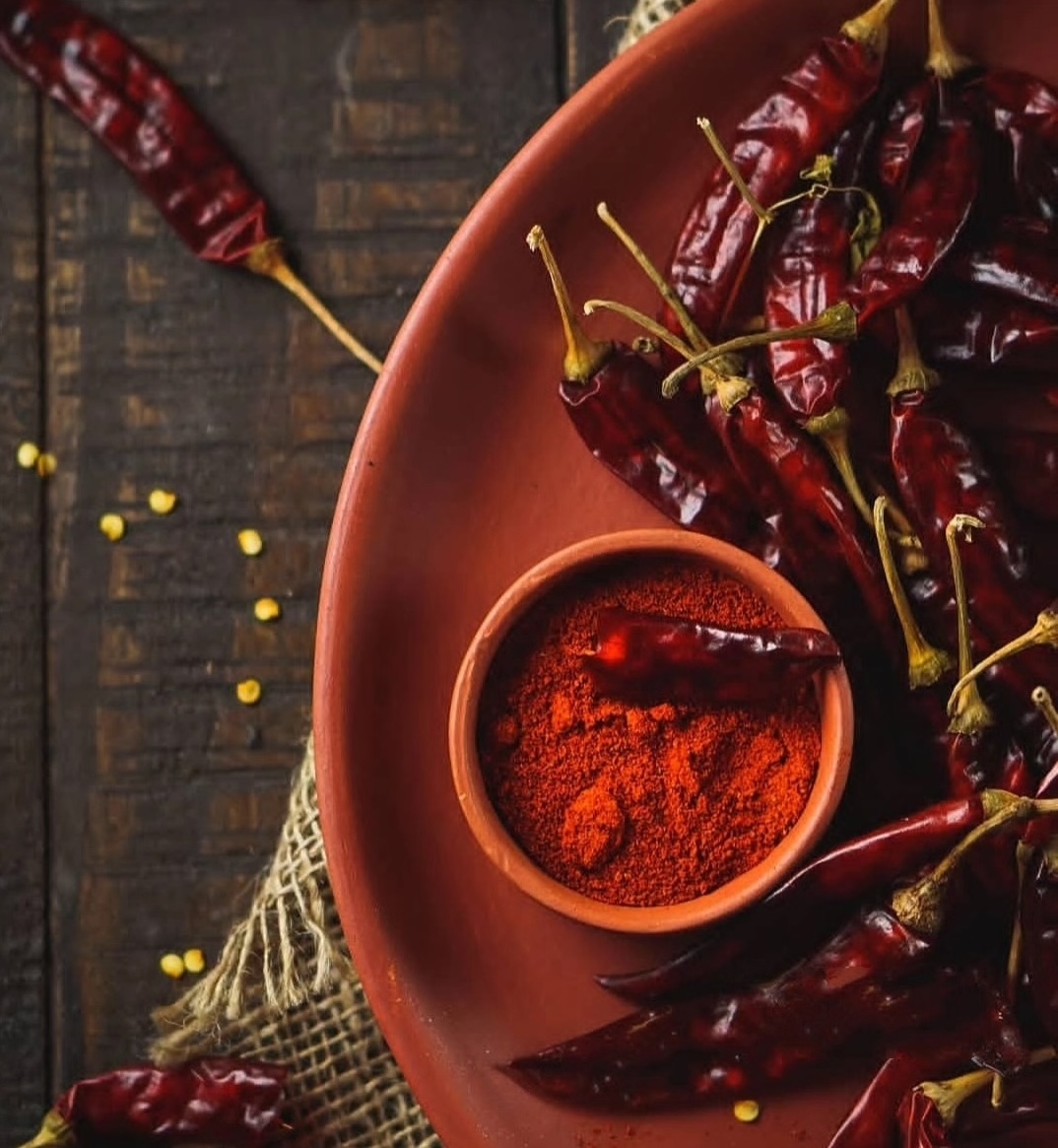 Pounded Chilli Powder, made from dried chilies, adds a spicy kick to your meals.