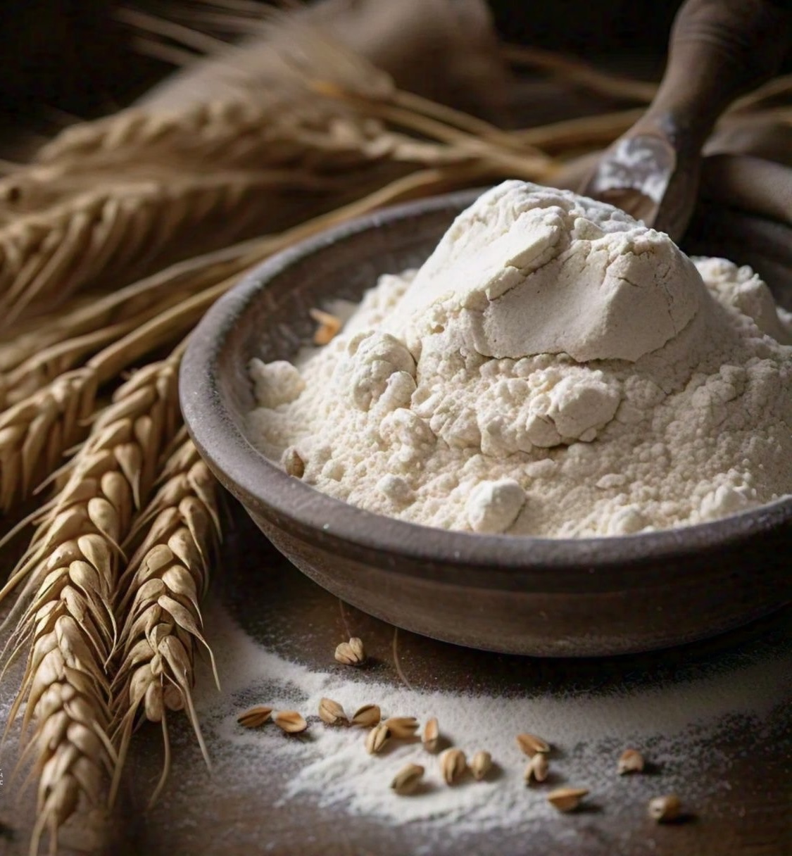 Stone-grounded wheat flour, preserving the natural goodness of whole wheat grains.
